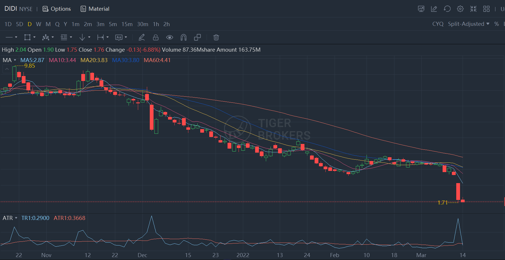 Shares of $DiDi Global Inc.(DIDI)$plunged 44% on Friday, following reports that the Chinese ride-hailing leader was ceasing its preparations for a listing on the Hong Kong Stock Exchange.