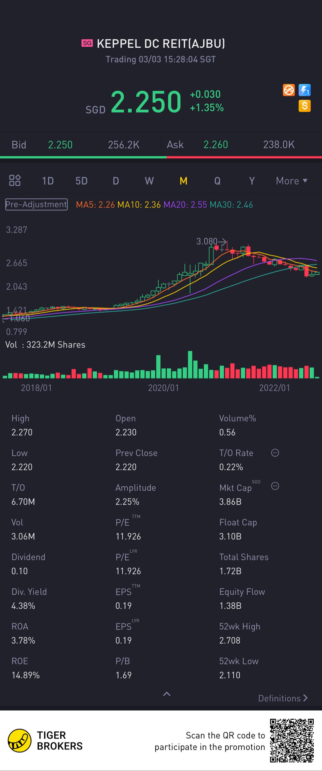 $KEPPEL DC REIT(AJBU.SI)$Finally some positive moves in the past few days.