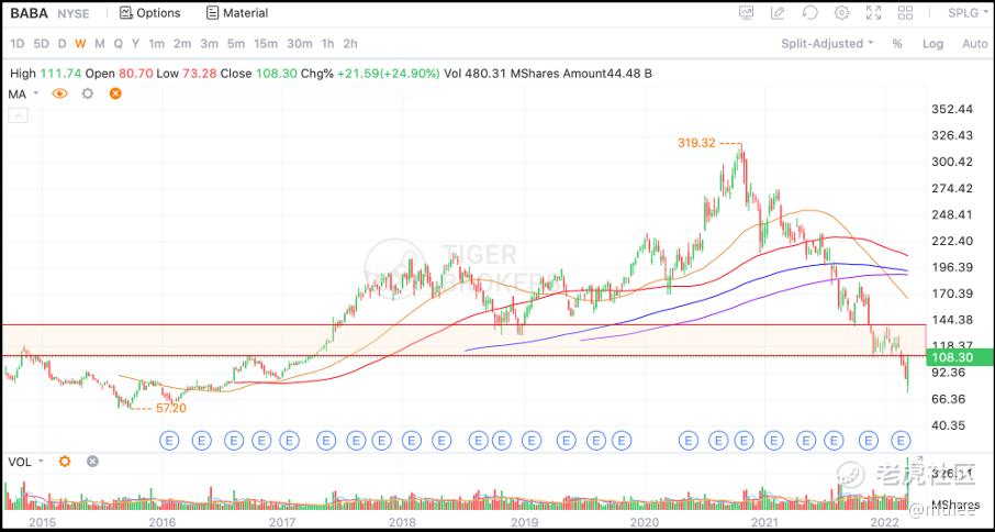 Down to individual stock's level, looking at one of the bellwether of Chinese stocks $Alibaba(BABA)$ , we can see what looked like capitulation, and then price rebounded to previous consolidation zone (orange box) of strong support. The trend is hazy at specific stock, some others like JD and NetEase are clearer, but it does show similar price action as the sector and broad indices. The next few weeks to a month are thus crucial for us to get confirmation if the low is in, and we are in a trend reversal to the upside.