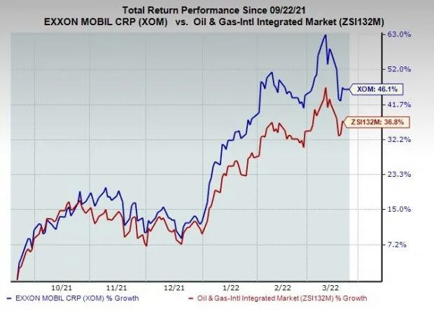 Shares of ExxonMobil have outperformed the industry in the past six months. The stock has gained 46.1% compared with the industry’s 36.8% growth.$Exxon Mobil(XOM)$