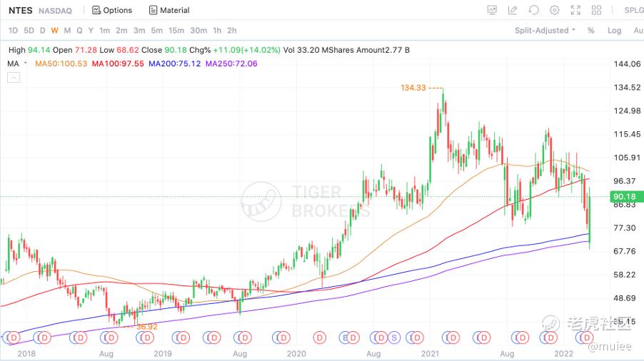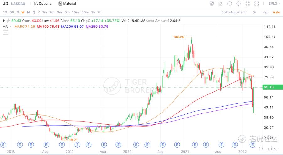 Scanning the charts of other four, only $JD.com(JD)$ and $NetEase(NTES)$ have very similar price action and probable setups for long term investors. With price above long term support 200, 250 MA, if price could consolidate and clear the shorter 50 and 100 MA, that would give greater confidence of uptrend resuming once again for these Titans.