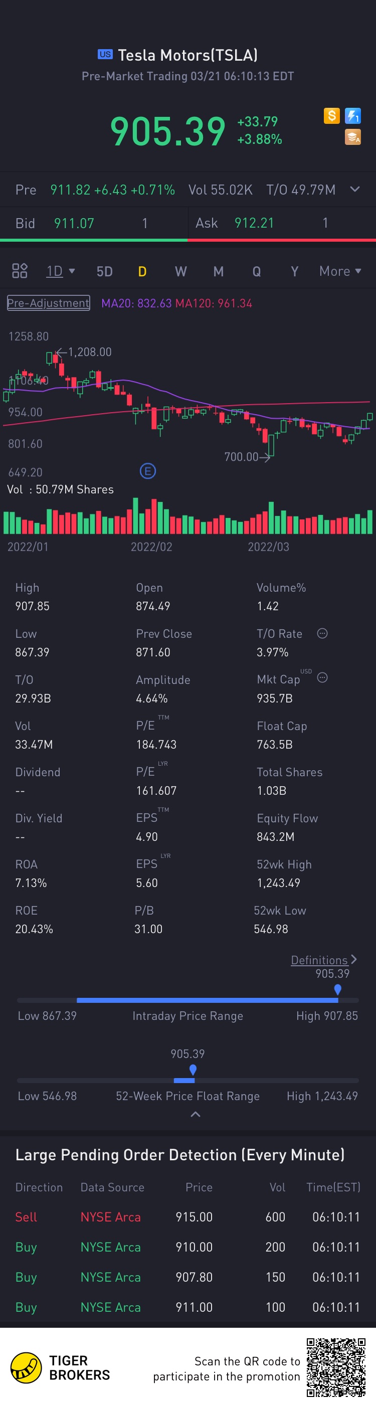 $Tesla Motors(TSLA)$Got a feeling it will reach 1000 today