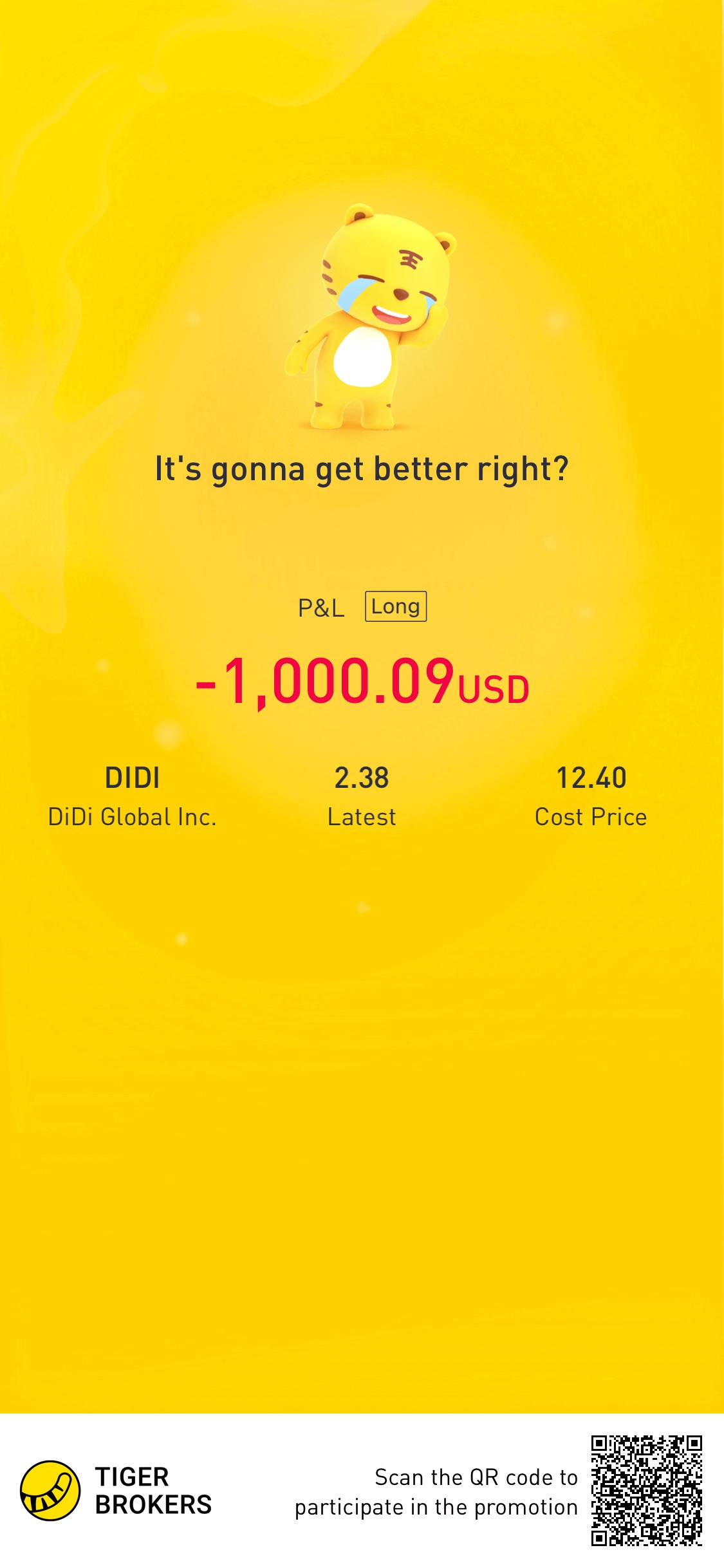 $DiDi Global Inc.(DIDI)$Lol. Wtf? Last time Ican exit when premarket hit $13 but didn't. Now lose :)