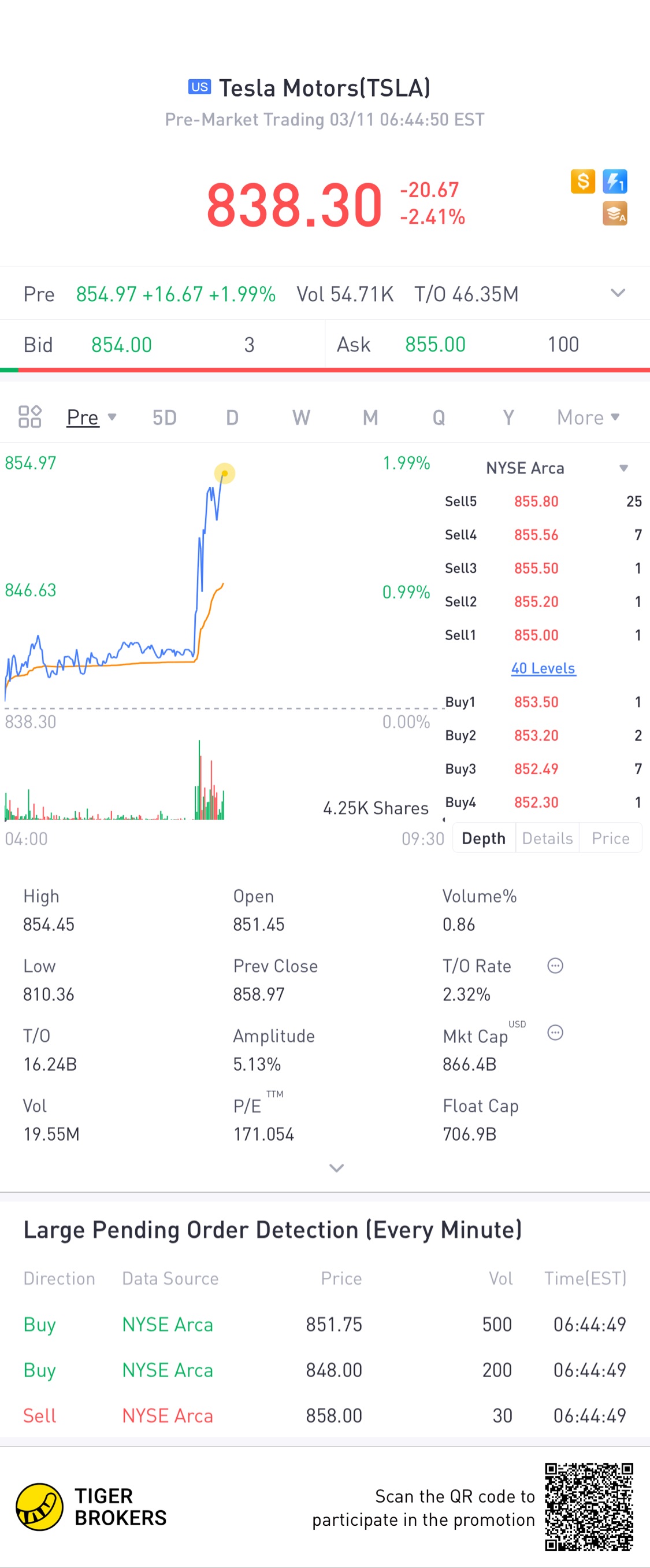 $Tesla Motors(TSLA)$Wow nice grow . Hope it willt will go above 860 when market close