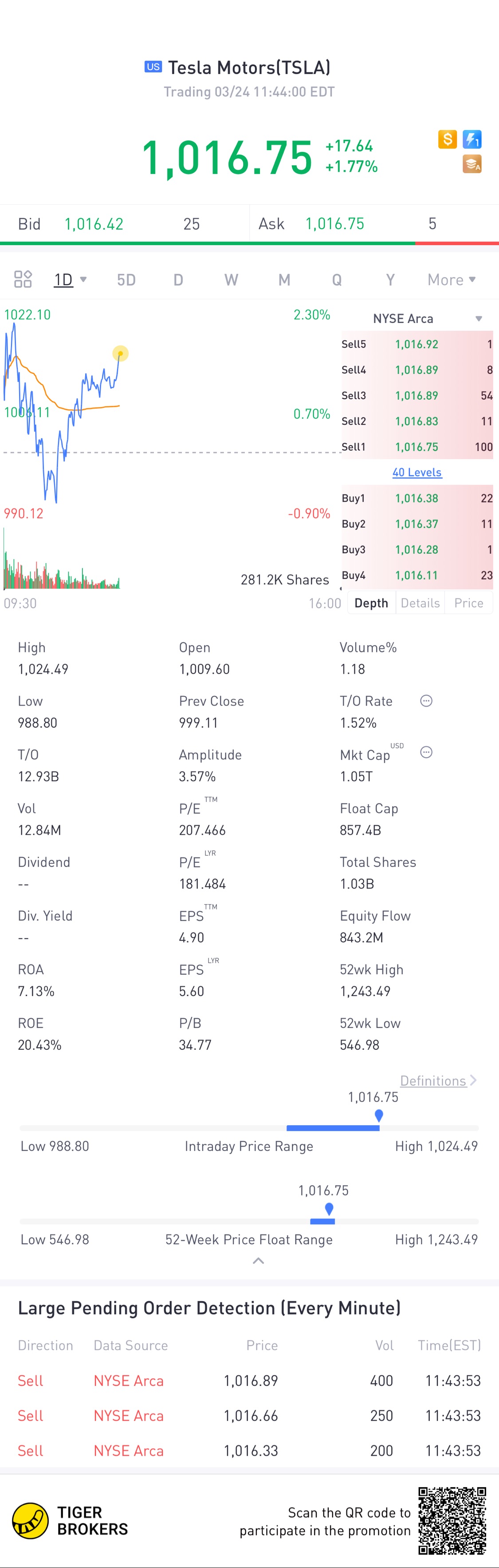 $Tesla Motors(TSLA)$common . Up to 1020 and hold