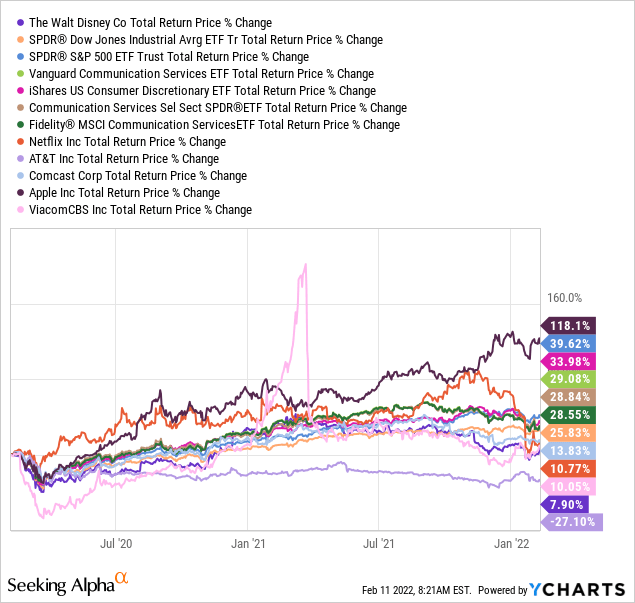 Not only is the stock delivering way less impressive results over the past two years, but for the first time in ages, DIS is underperforming both its benchmarks as well as its main competitors.