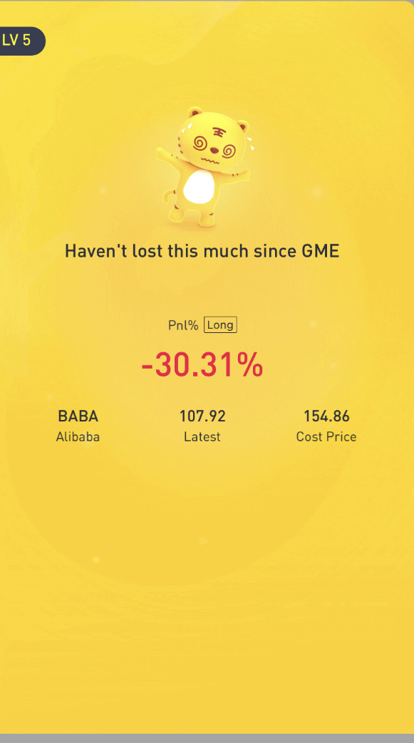 I faced unreasonable boss and bad politics in thecompany. I invested heavily in the US market hoping to make a pile and throw in the towel. After looking at my portfolio and $Alibaba(BABA)$, I guess humble pie will be my favourite food for lunch And dinner.
