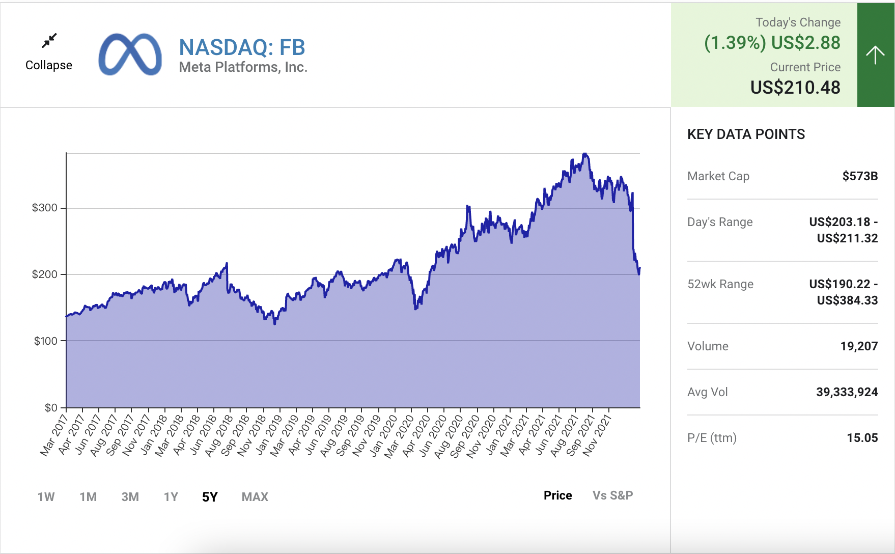 Facebook parentMeta Platforms(FB1.39%)has gotten off to a rough start in 2022 -- its stock price is down by more than 35% so far this year. That huge decline was largely triggered by a fourth-quarter earnings report that left investors unimpressed with both the social media giant's recent performance and its guidance.