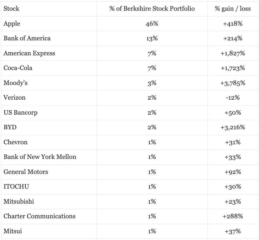 "Below we list our fifteen largest equity holdings, several of which are selections of Berkshire’s two long-time investment managers, Todd Combs and Ted Weschler."