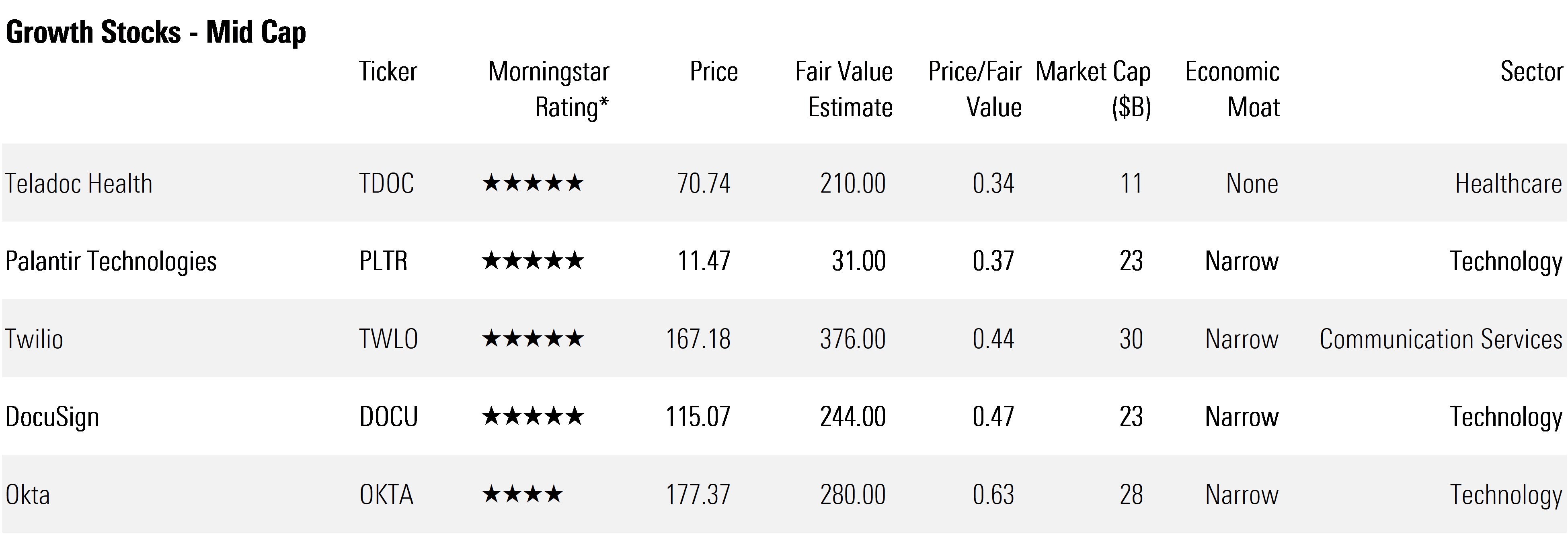 Stocks that fit into the category colloquially known as “Disruptive Technologies” skyrocketed in 2020 to unsustainable valuations and peaked in February 2021. At that time, many of those stocks that we covered were trading at 1- and 2-star ratings. These stocks then crashed back to earth in 2021 in many cases falling over 50+% from their highs. The downward momentum has now brought many of these companies deep into undervalued territory and we rate a number of them with 4- and 5-stars. Teladoc $(TDOC)$, Palantir, Twilio $(TWLO)$, and DocuSign $(DOCU)$ fall into this category.