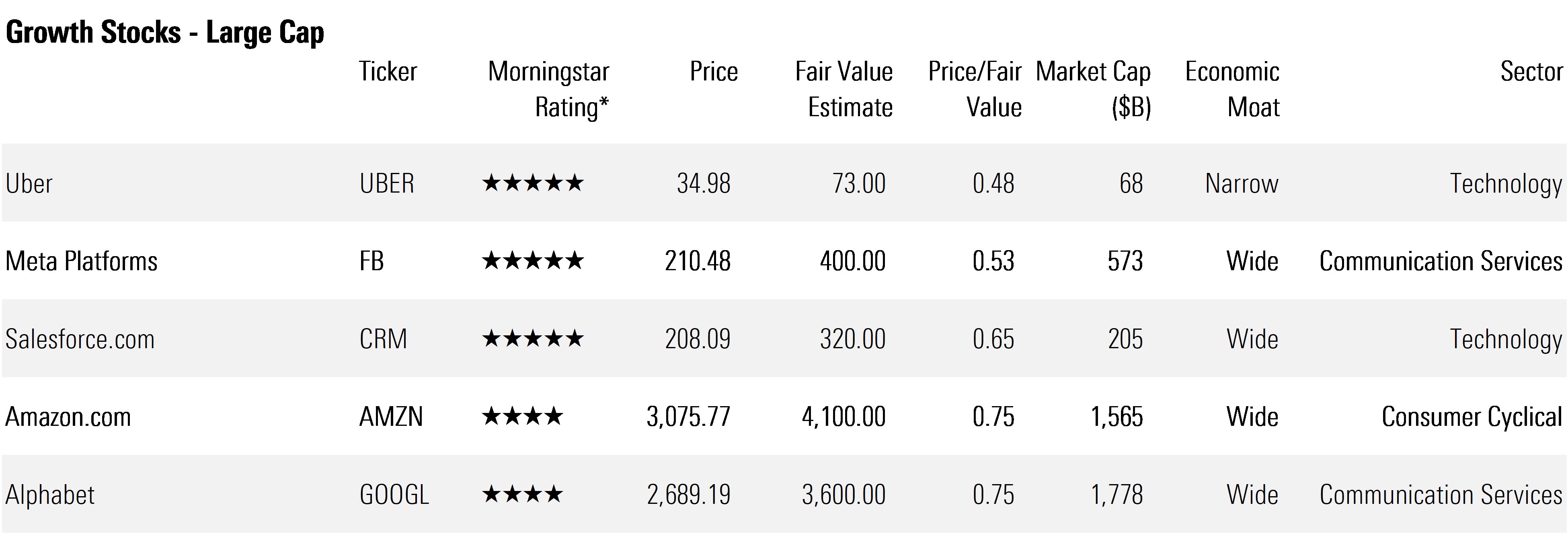 Stocks on the undervalued list include some of the market’s biggest names, such as Amazon.com $(AMZN)$, Uber UBER and Alphabet GOOGL, along with cybersecurity company Okta $(OKTA)$, Palantir$(PLTR)$--which provides intelligence software to governments--and Boston Beer $(SAM)$.