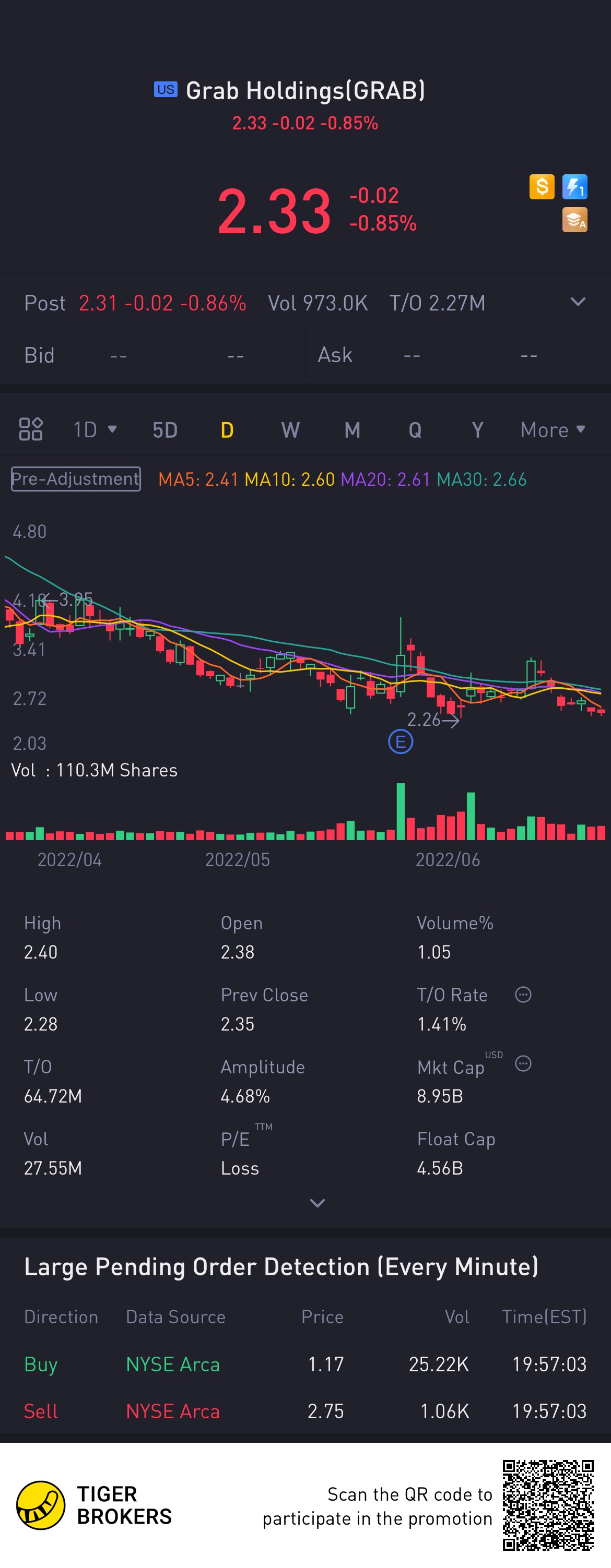 $Grab Holdings(GRAB)$Anyone notice grab isvery close to the 52 week low? It could be a chance for a technical rebounce off the low or it could very well slice through the low. Stock is moving slowly reminds me for SGX stocks but mini the fact that you can trade this with almost zero to low commissions this time round.