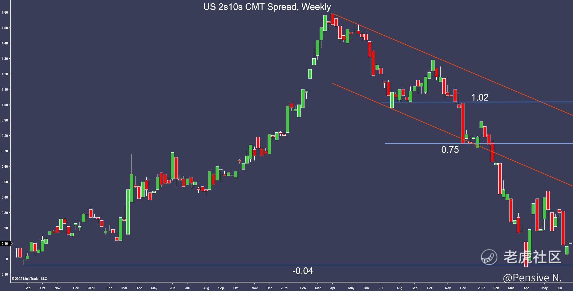 - US yield curve’s inversion in early April, and mid June (even as the Fed turned hawkish) is a clear warning sign