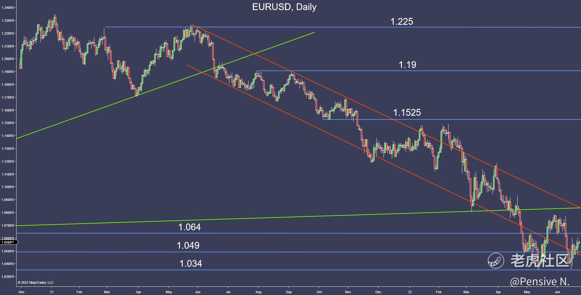 - EUR has made a double bottom at 1.034, but has yet to really rally higher with it trading sideways ~1.055
