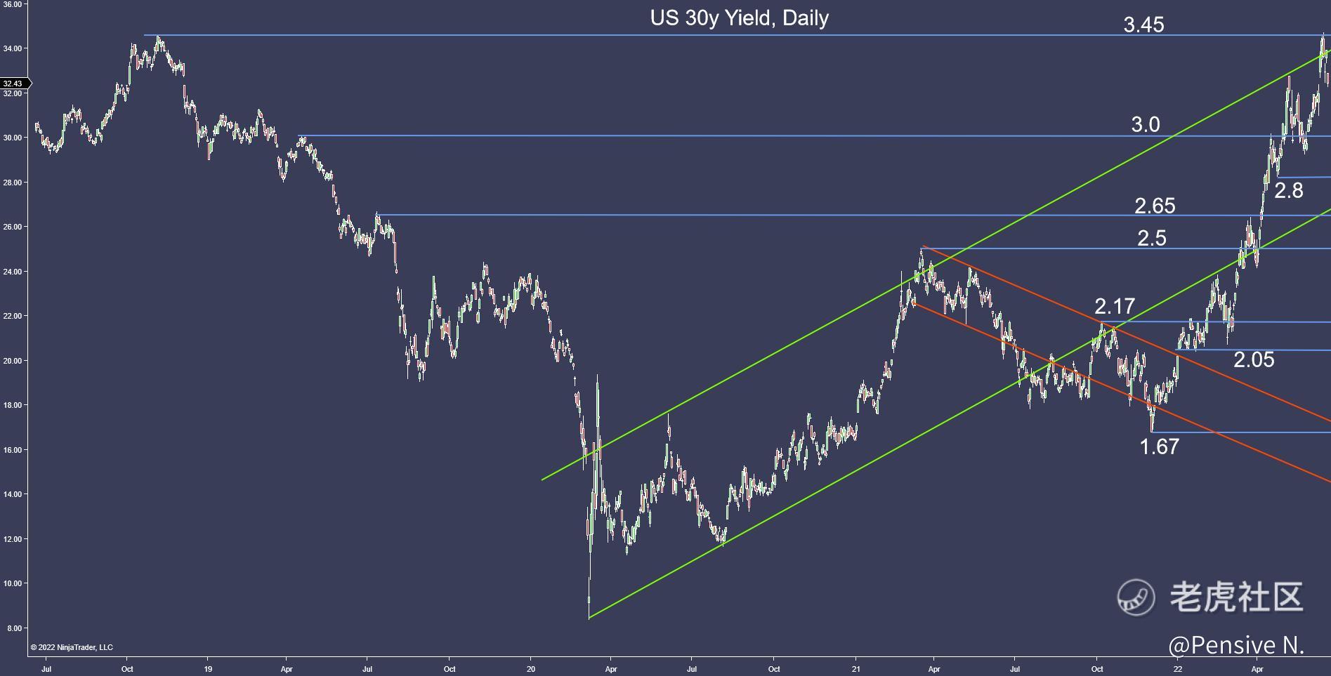 - A break above 3.45% could see a test of 2014’s highs, ~4%