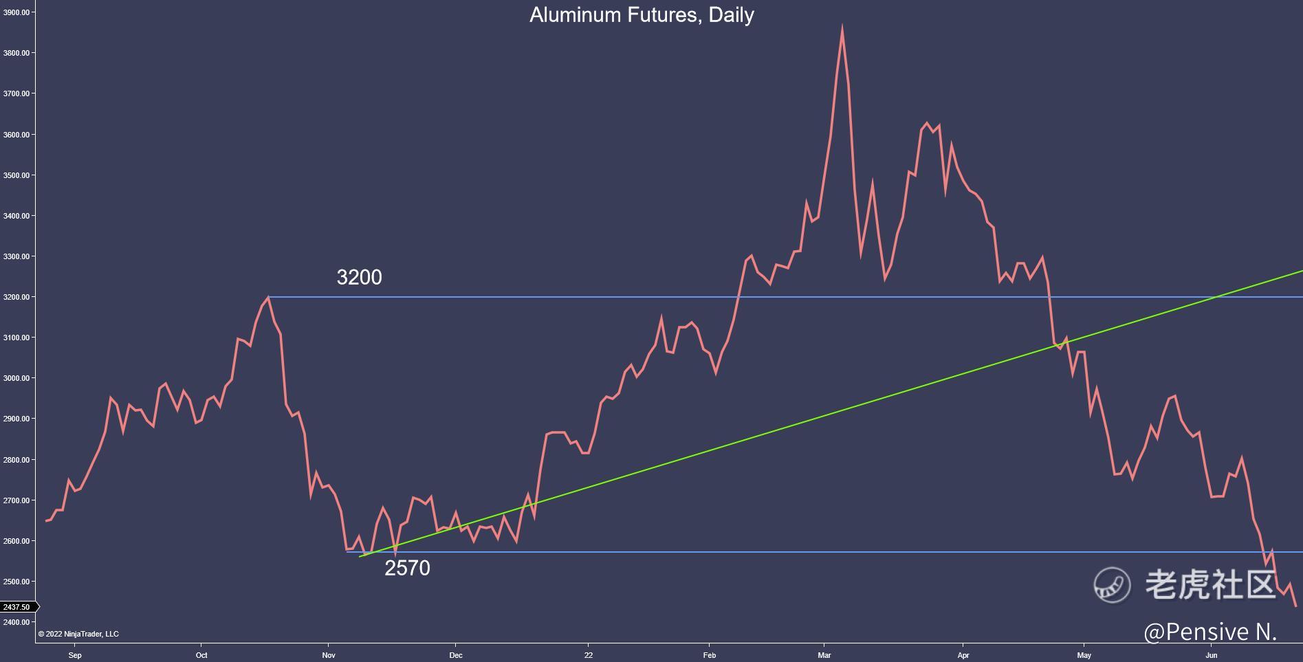 - Aluminum is still crashing, and has now decisively broken below major support at 2570 to trade below 2500
