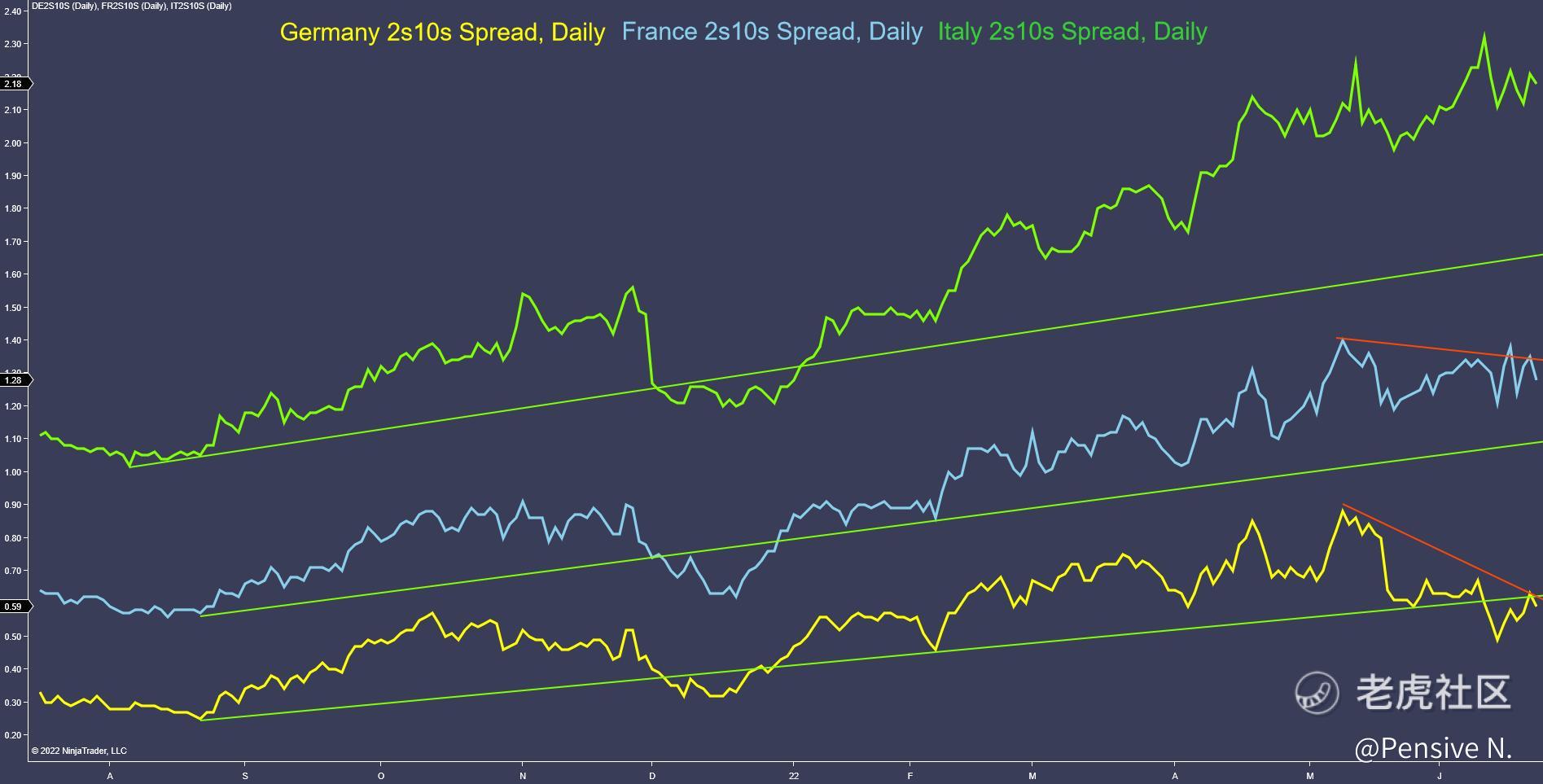 - The past week saw French & Italian curves start to flatten, with the German curve in a clear downtrend