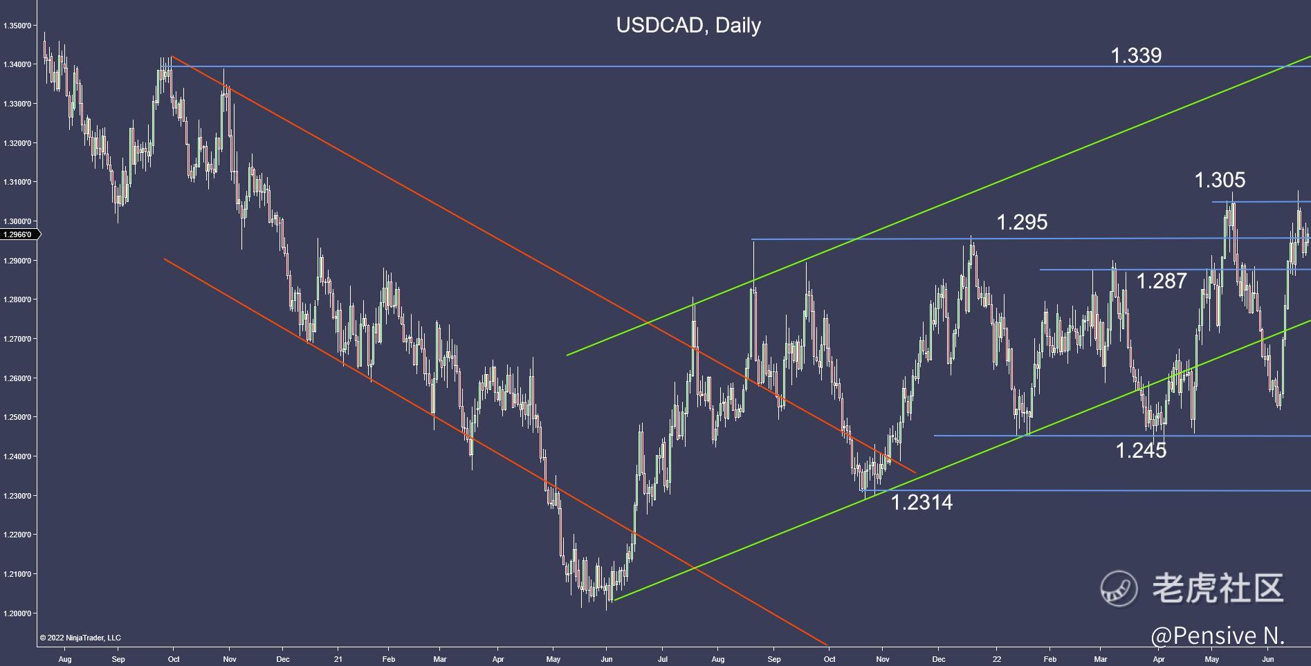 - The trend is bearish, and a break above 1.305 looks likely, although CAD could be forming a wide range between 1.2314–1.305