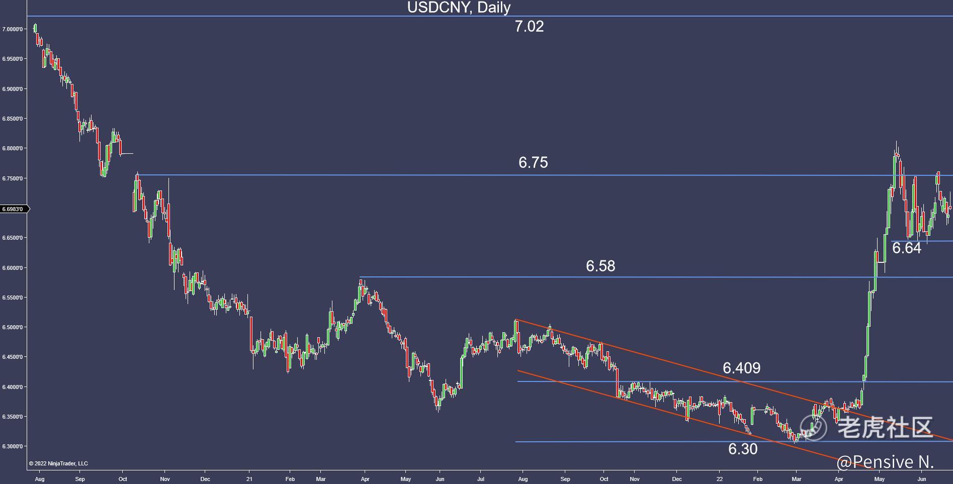 - A break of resistance at 6.75 could see a test of 7.02, which would not bode well for risk assets