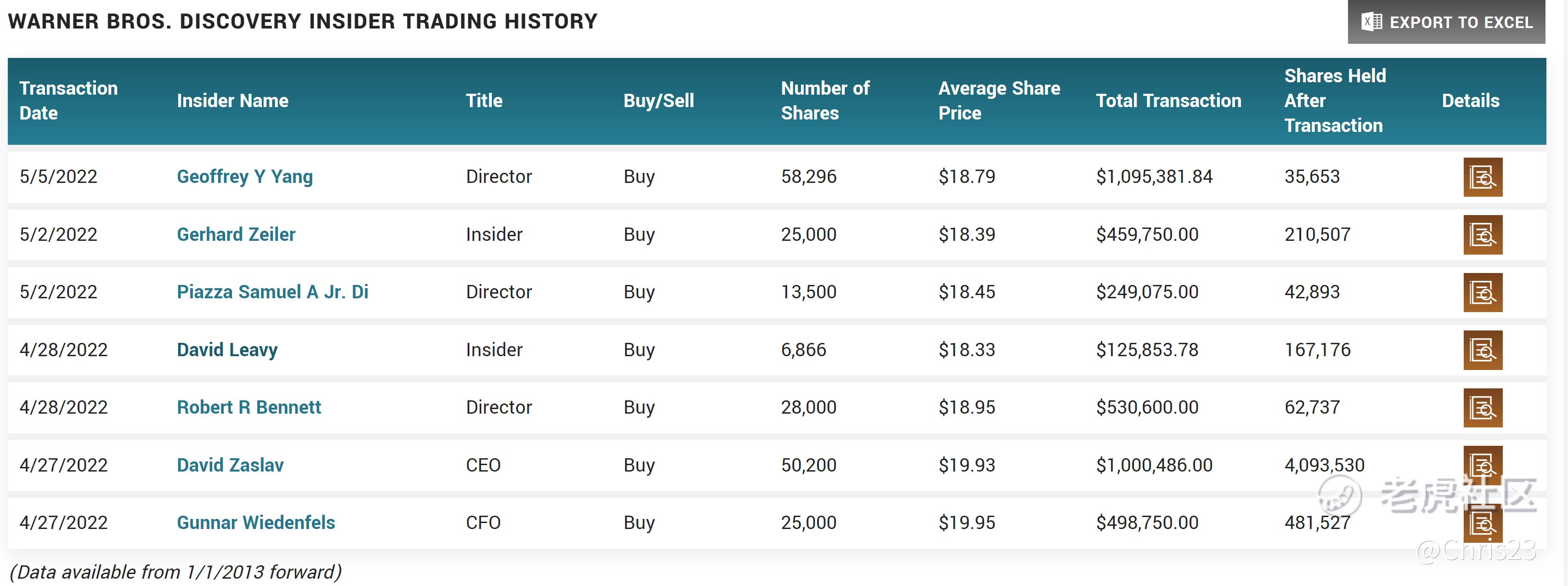 Lynch claims that following a spinoff, heavy insider buying could be a signal that the new officers and directors believe in the company's prospects. Guess what WBD's directors and officers have been doing since the merger? Buying shares. 7 out of 7 of WBD's latest insider transactions show that insiders have been scooping up shares of the newly merged company. This supports the view that insiders believe in the long-term prospects of the company and feel that the company is trading below/at fair value