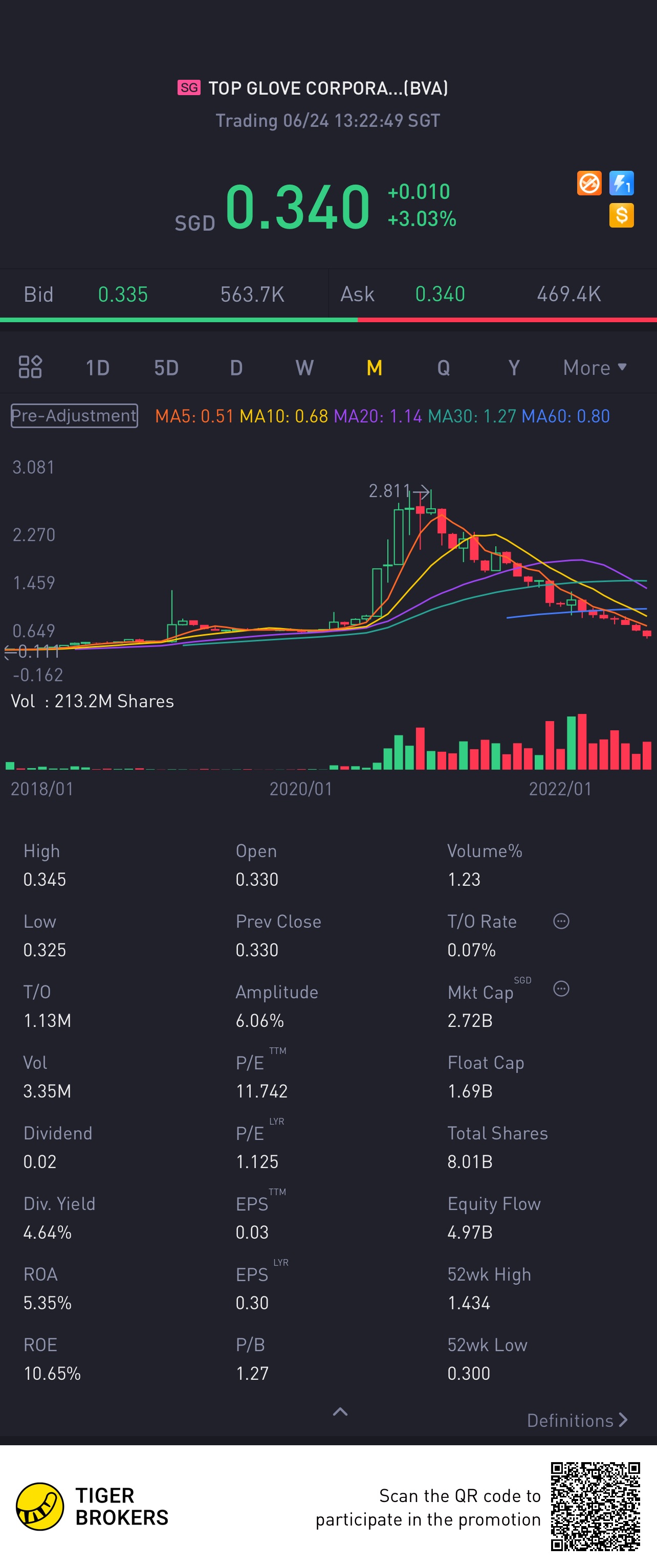 $TOP GLOVE CORPORATION BHD(BVA.SI)$Need 8 times up