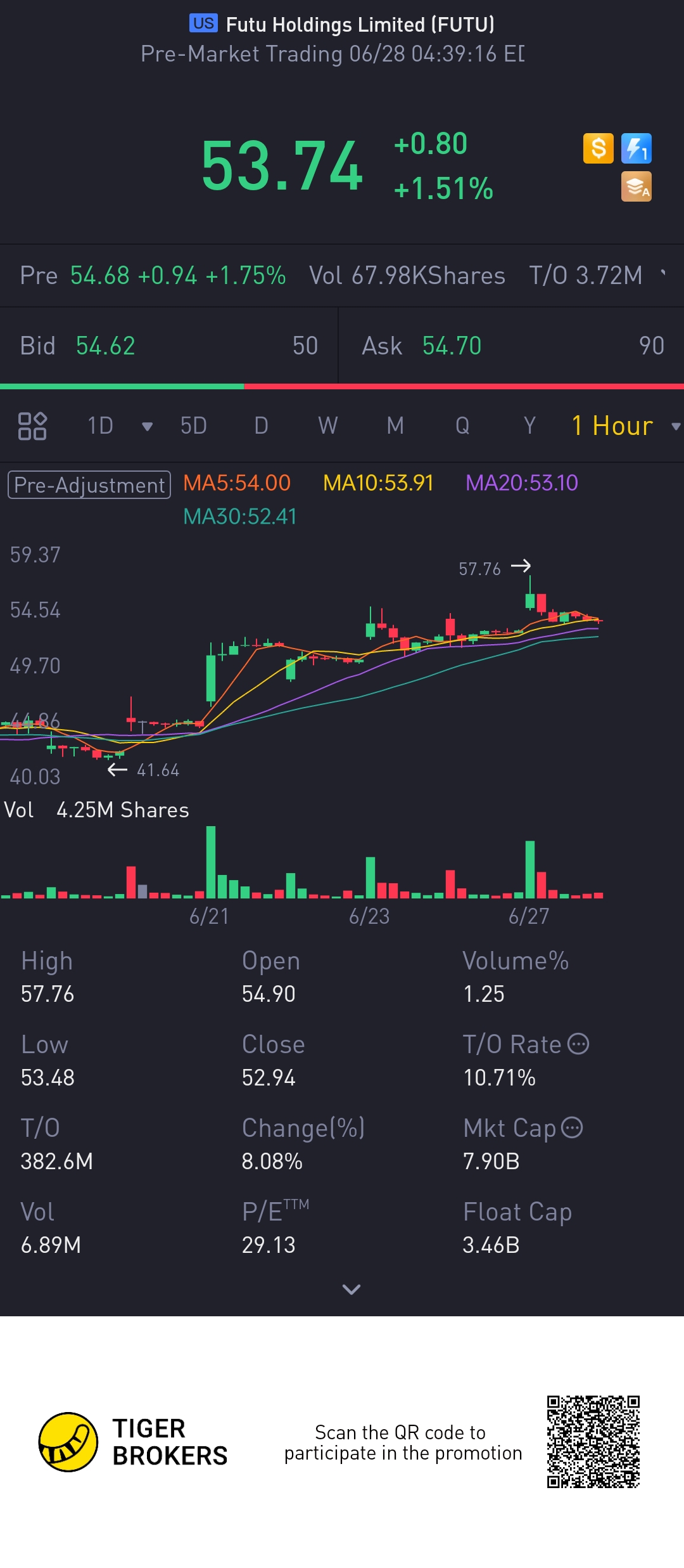 $Futu Holdings Limited(FUTU)$iits time to enter, yesterday was a good run and many has sell to take profits, even so FUTU is still strong as Chinese Govt has been supporting it, with Beijing and Shanghai opening up after China has declared successful achieve 0 covid target with HSI on the bullish trend. I'm on board waiting to be reaching the moon.. [Happy] [Happy] [Call] [Call] [Call] [Call]