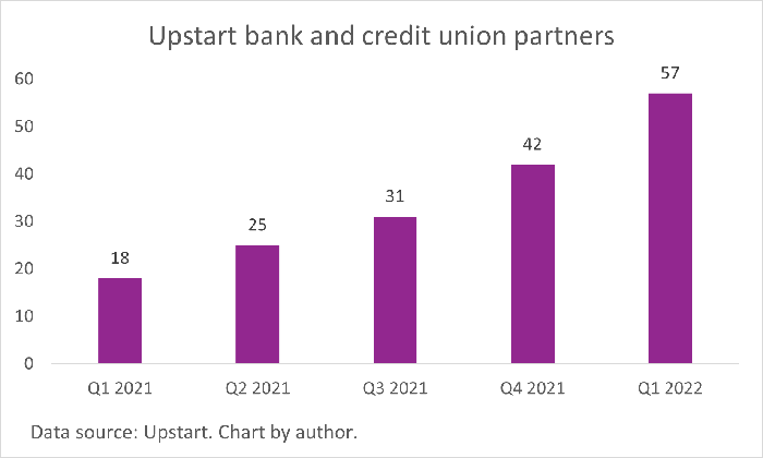 It's likely the reason the number of financial institutions using Upstart has more than tripled in just the last 12 months.