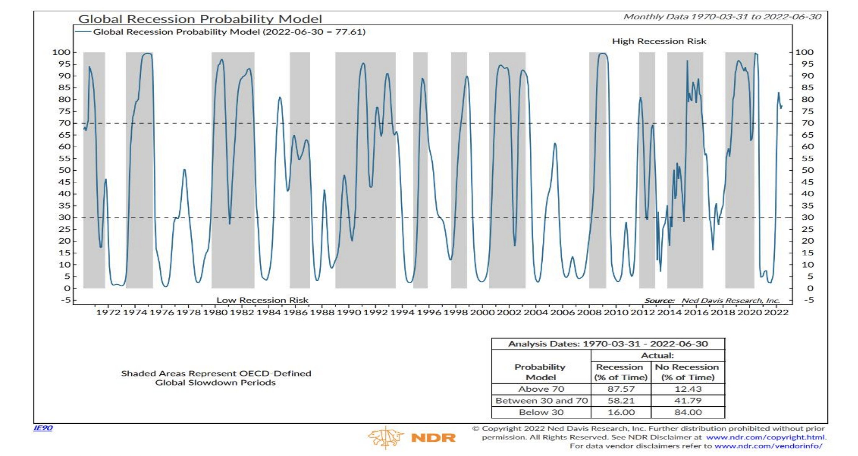 Cited from Ned Davis Research's Global Recession Probability, the current Recession risk is elevated.