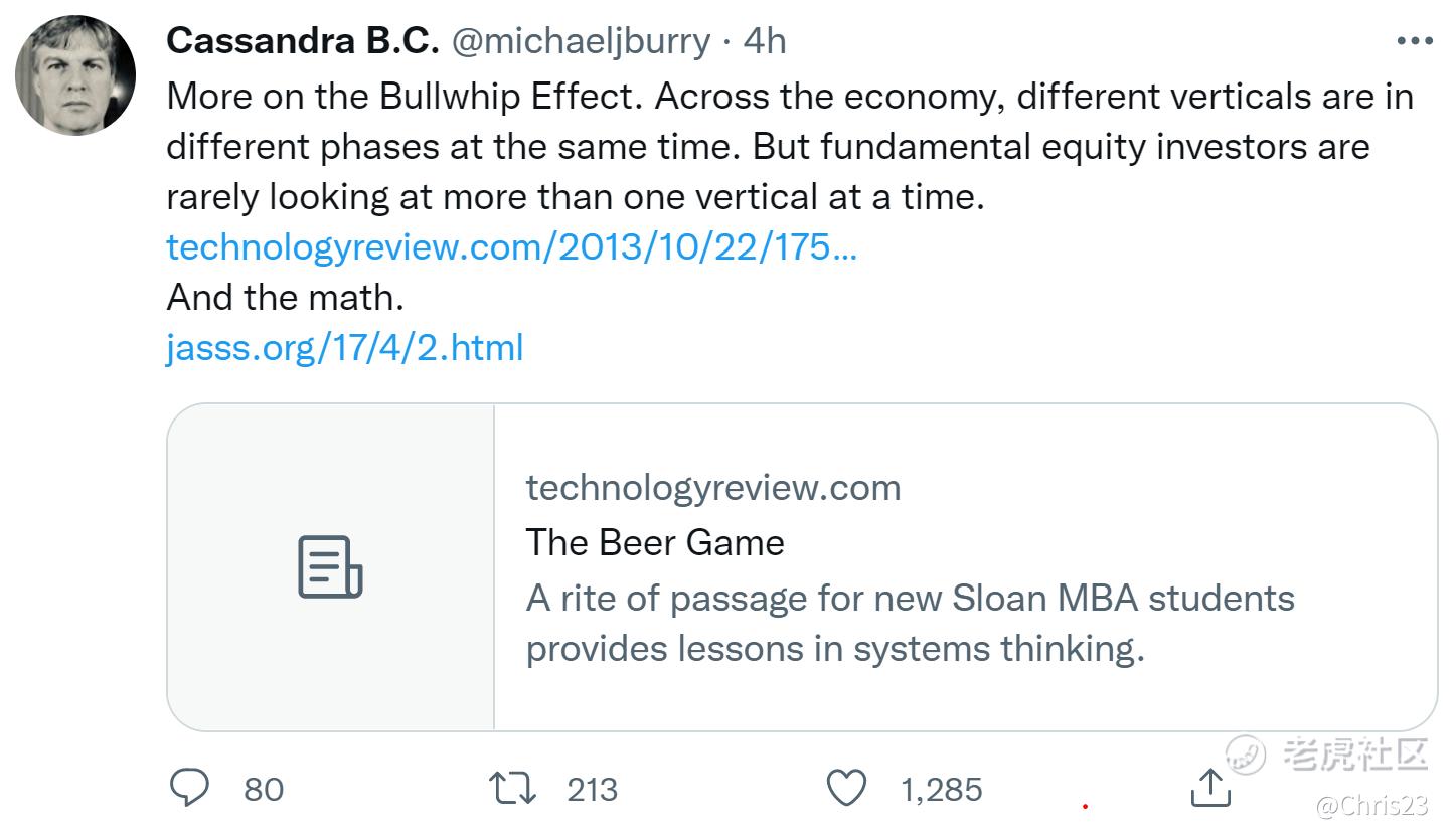 Similarly, Burry, the founder of Scion Capital, warned that "the supply glut in retail is a result of the Bullwhip effect" and its disinflationary effect could lead to the Fed cutting interest rates and reversing its QT cycle at the end of this year. Burry claims that the stock market will bottom once investors swear that they will never own an NFT, cryptocurrency or technology stock ever again, referencing the 2000 dot-com crash, 1970s market crash and The Great Depression.