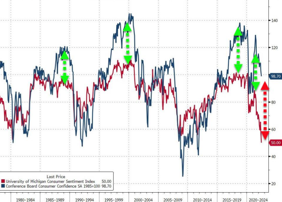 On the surface, it is affected by economic data-the consumer confidence index of the United States fell to the lowest level since February 2021 in June (the gap between consumers' views on the present and their expectations for the future has widened, increasing the risk of economic recession).