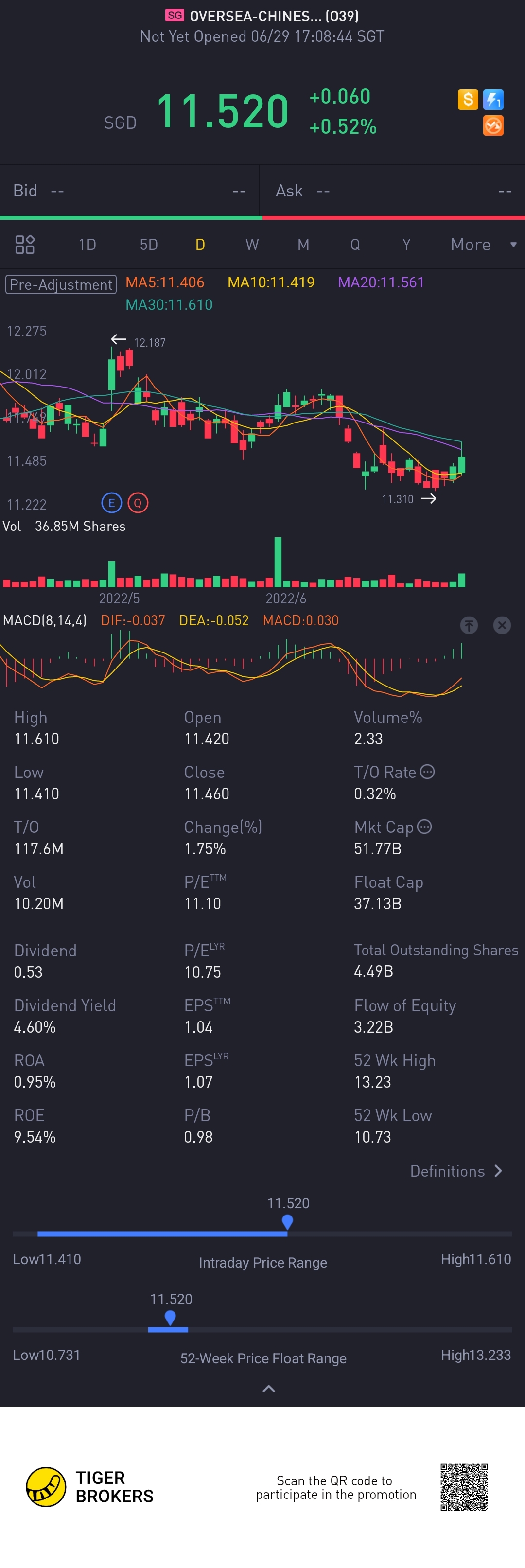 $OVERSEA-CHINESE BANKING CORP(O39.SI)$Chart is looking good, hope it can continue to inch upward, including the other two banks.[Heart] [Heart] [Heart]