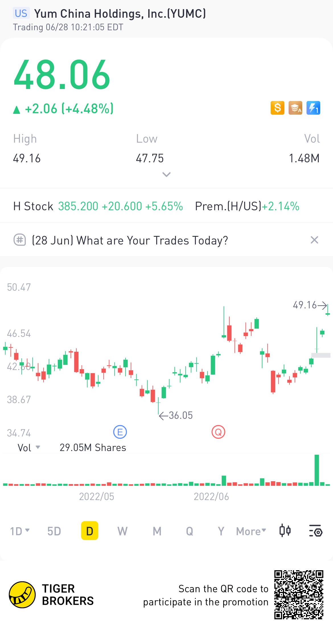 $Yum China Holdings, Inc.(YUMC)$Unusual volume detected