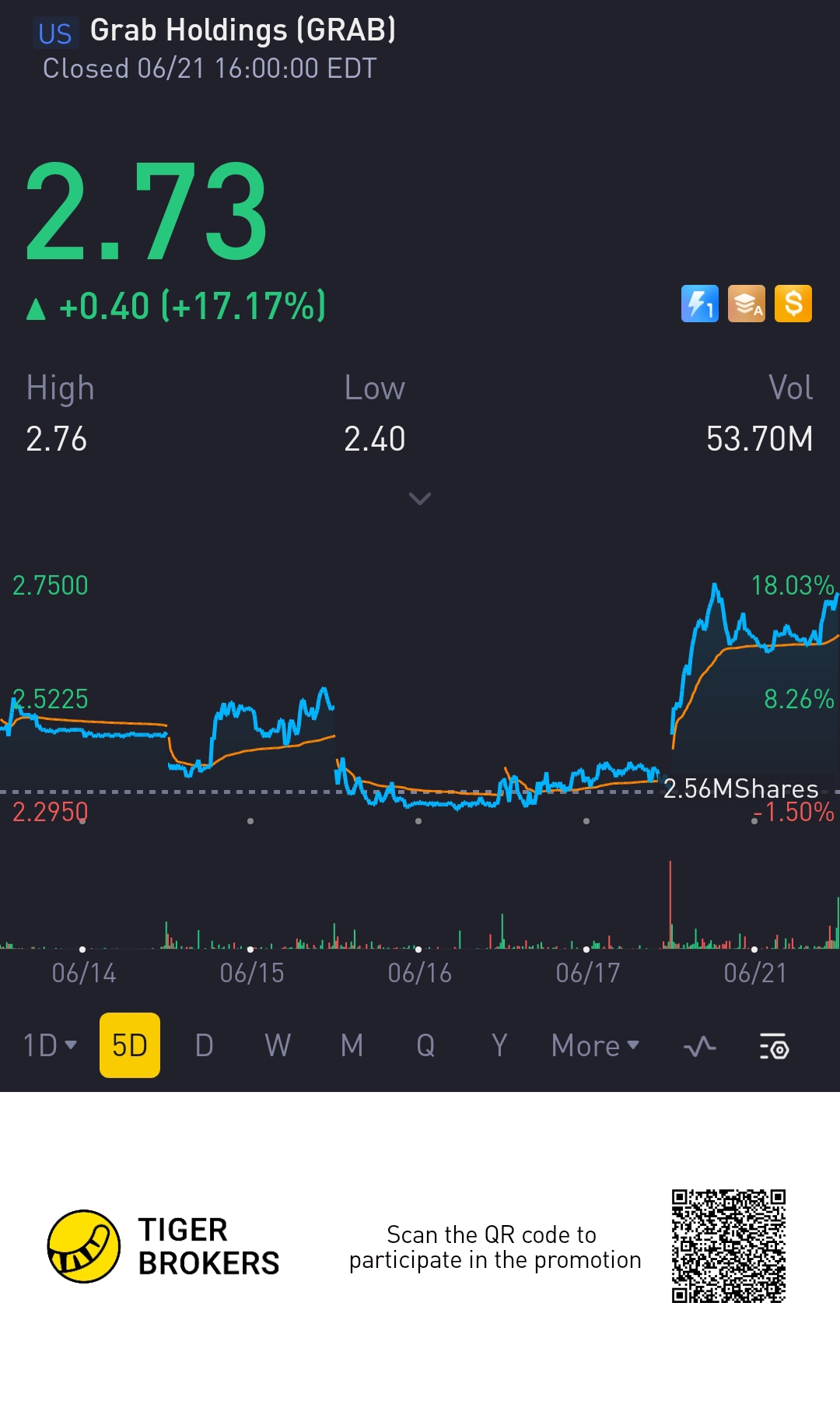 $Grab Holdings(GRAB)$Grab shares surged 13% in morning trading after Grab Holdings initiated with a Buy at Deutsche Bank.