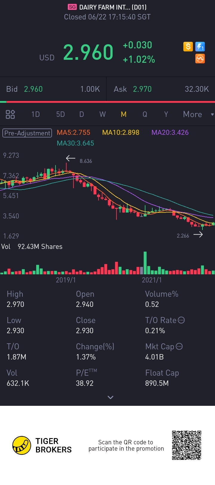 Do we already have a bottom for Dairy Farm. The stock is pretty stable despite the current volatility as it is in thr consumer staple sector