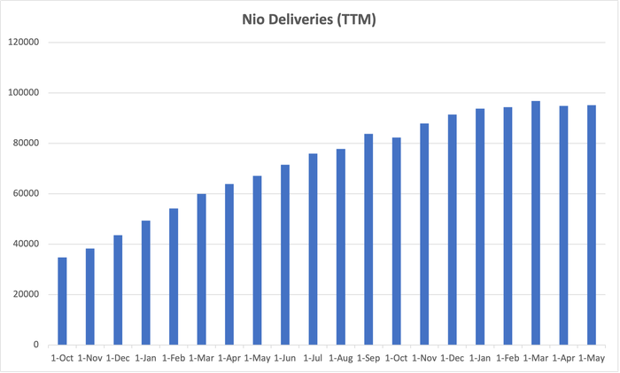 Those recent headwinds have impacted Nio's growth trajectory in recent months, with trailing-12-month sales leveling off.