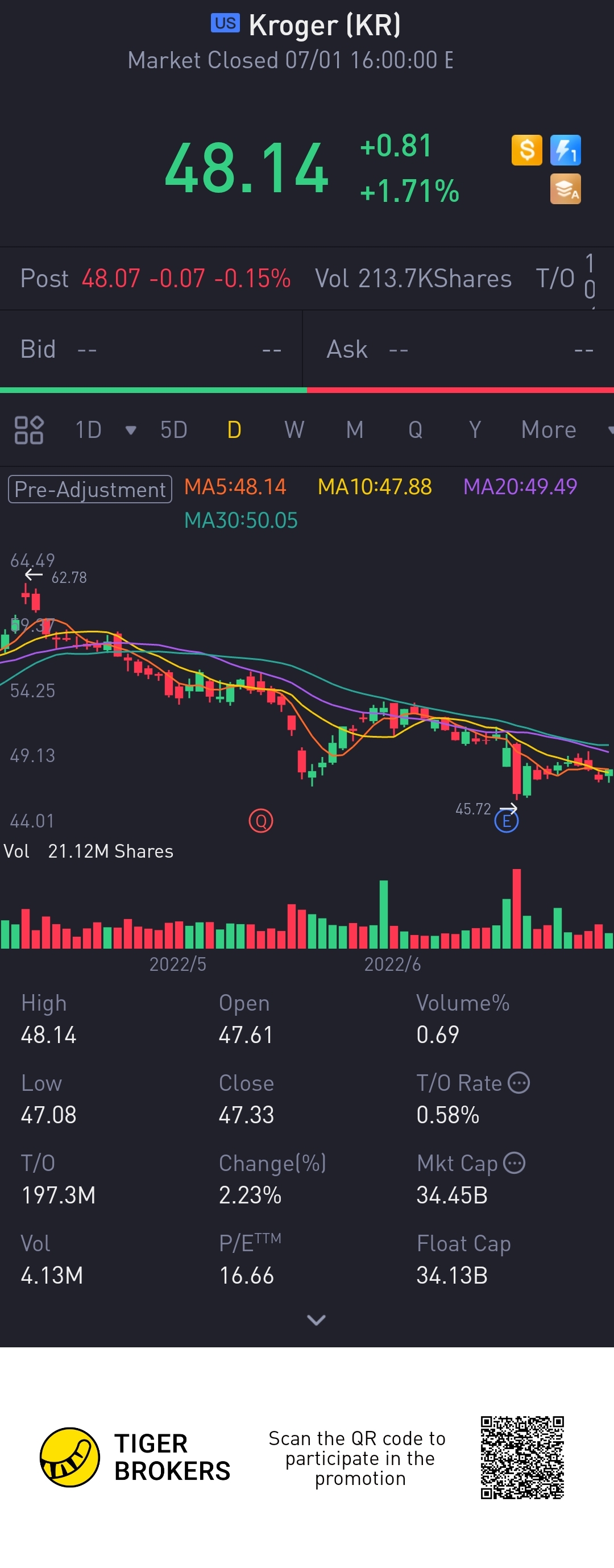 $Kroger(KR)$move up