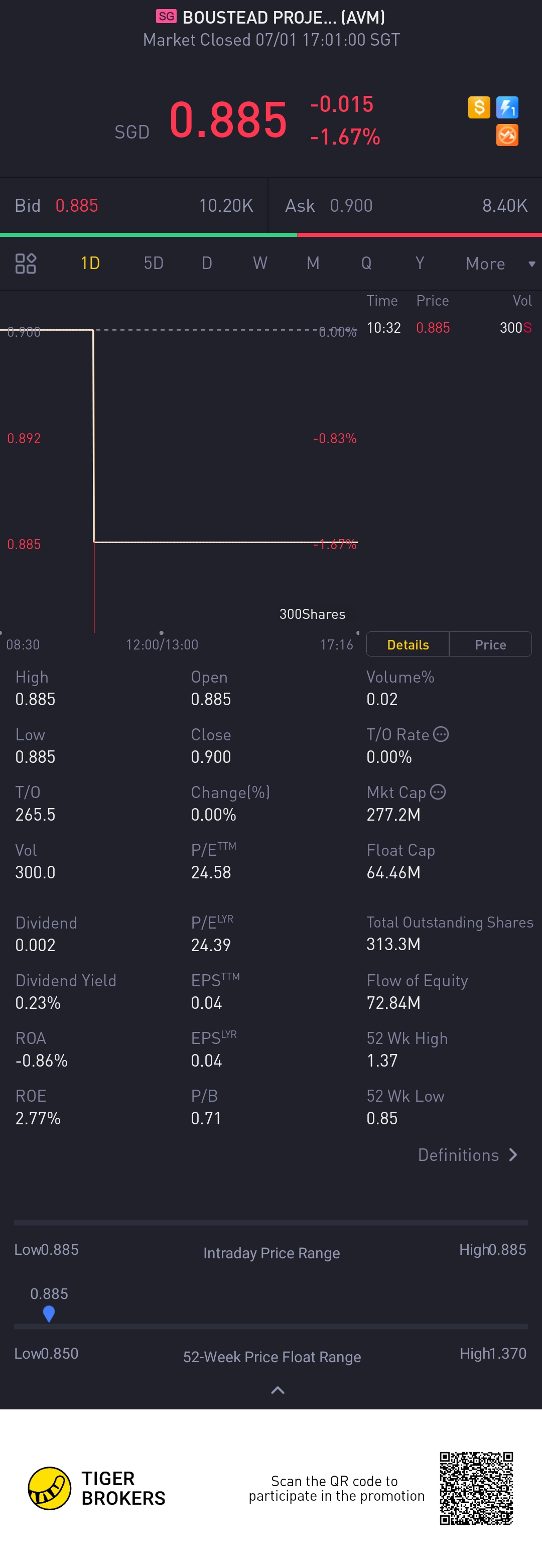 $BOUSTEAD PROJECTS LIMITED(AVM.SI)$at current price, is it a good price to buy? Do your own due diligence before you invest.