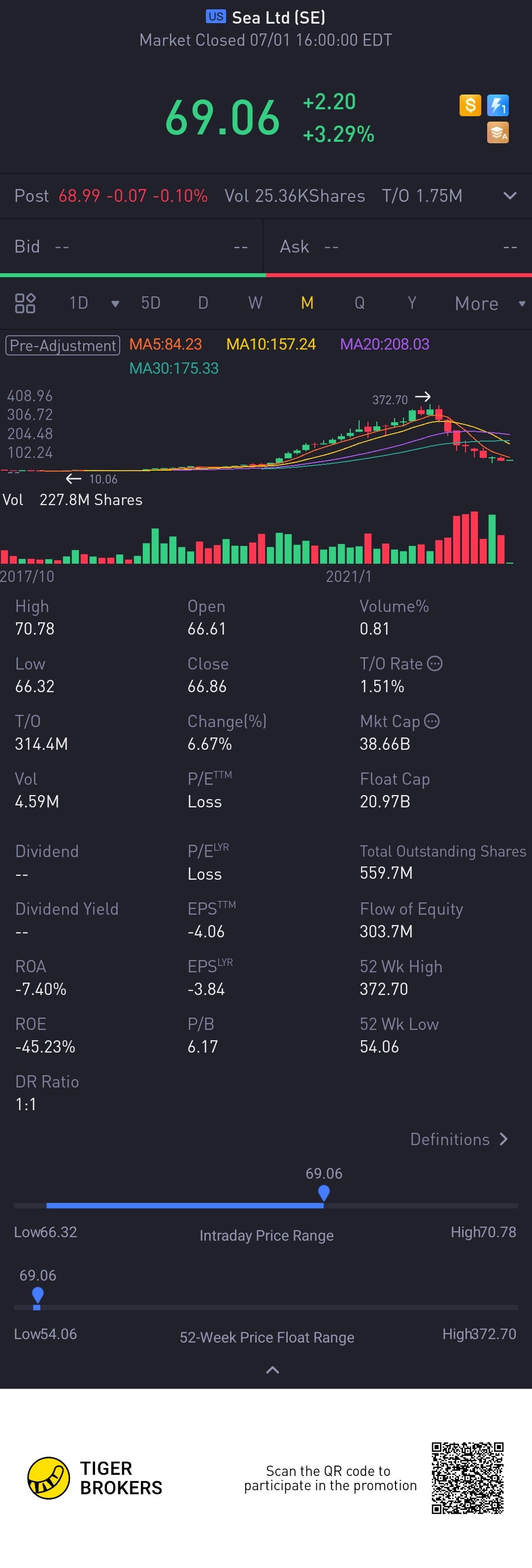$Sea Ltd(SE)$Latest results shows that the growth story has disintegrated. Profits earned from Garena is declining and losses from Shopee is growing. GMV has slowed and seamoney is not growing fast