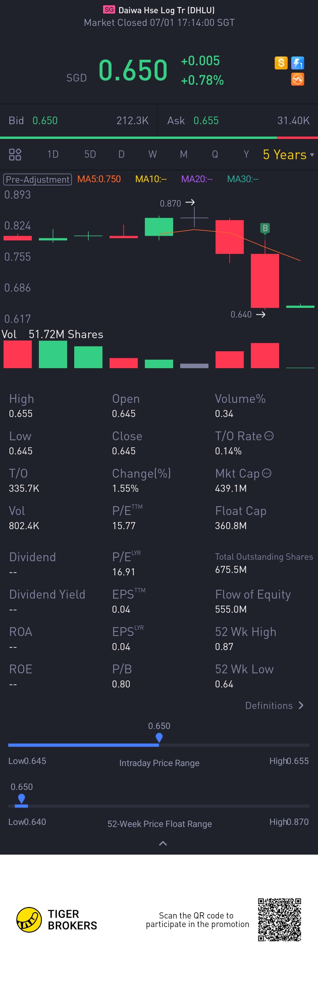 $Daiwa Hse Log Tr(DHLU.SI)$Accumulate on 52 weeks low....need time for Yen to rebound n price will follow