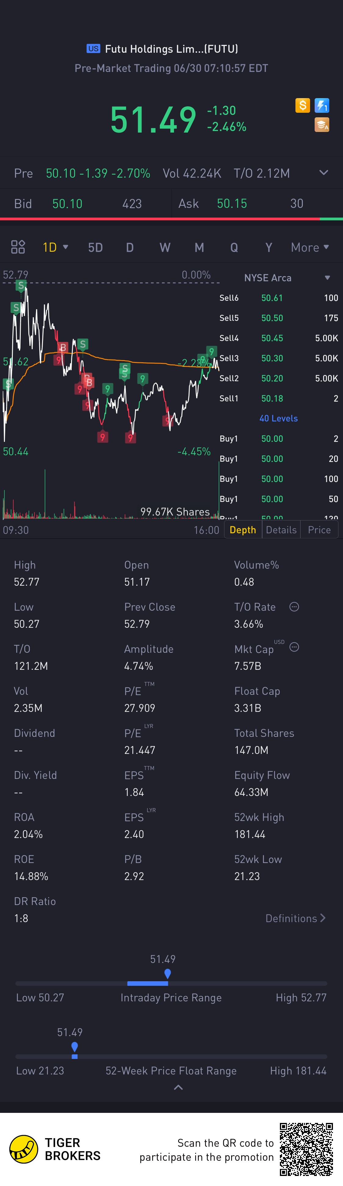 $Futu Holdings Limited(FUTU)$What does the 3 big tickets of 5k each telling us? Is it for show? Telling us that he has the funds to place such big orders and when the price reaches the point, and he will cancel the order?!