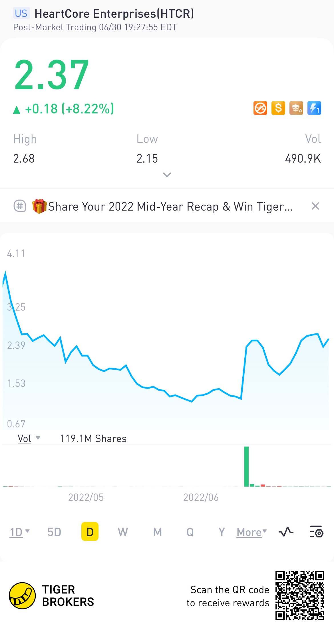 $HeartCore Enterprises(HTCR)$One of the only positive movers today đ¤