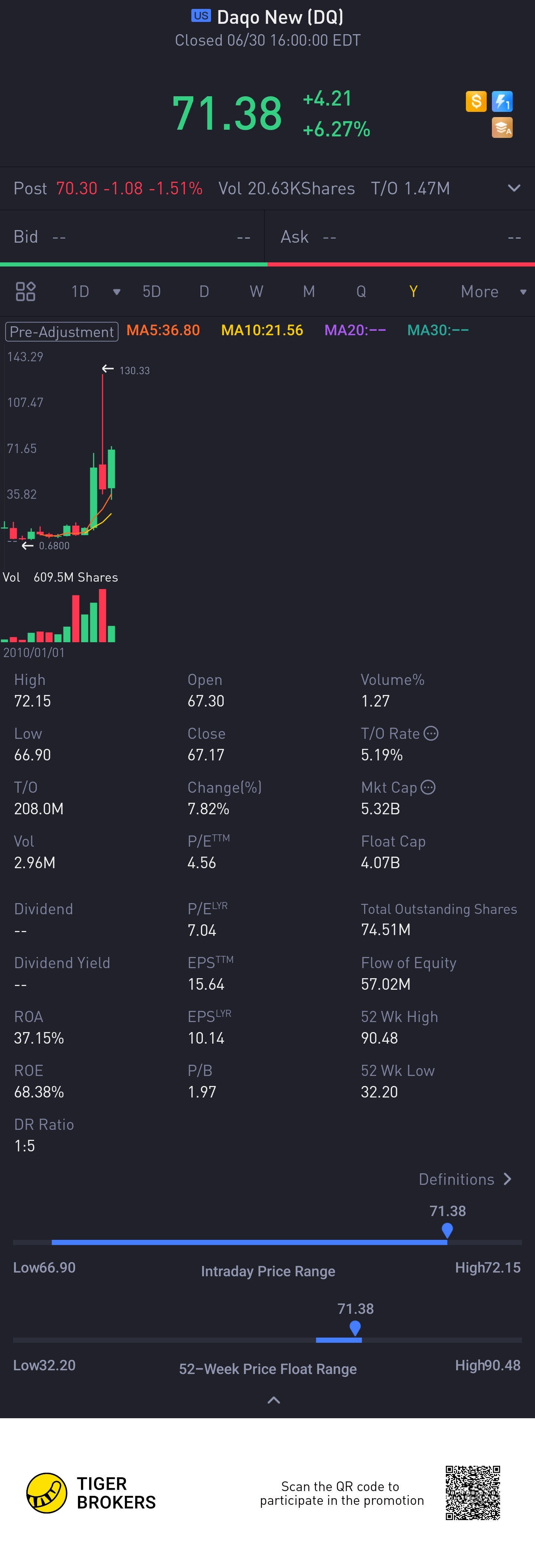 $Daqo New(DQ)$$iShares China Large-Cap ETF(FXI)$All these are showing strength. DQ is bull and FXI is showing signs of a bull phase. Enter either depending on your appetite at an opportune moment. If want outperformance, then choose individual stocks. If unable to monitor the market regularly, then buy a China or HK etf for now. It is time for China/ HK to move up. Avoid most US ETFs.