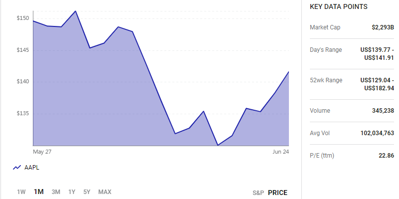 But despite the single-digit growth, Apple's $201 billion in liquidity should help it ride out any storm and keep it a crown jewel in the Buffett portfolio. Moreover, the stock has risen by 4% over the last 12 months. While not a stellar performance, it bodes well for the company considering that many tech growth stocks have lost more than three-fourths of their value in recent months.Also, its price-to earnings (P/E) ratio of 22 is at its lowest level since the beginning of the pandemic. Such a valuation could attract more investment from Buffett and other prominent investors. Given its relative stability and massive liquidity position amid this sell-off, perhapsnow is the time to buy.