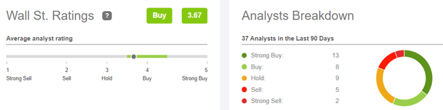 Here, we find a very interesting divergence between analysts that write for SA to those who work on Wall Street.