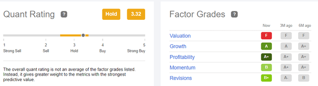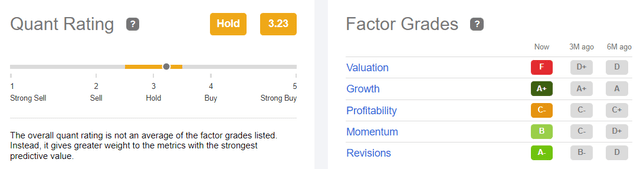 Both stocks are getting an "F" on 'Valuation' (We will get to this later on), and "B" on 'Momentum'.