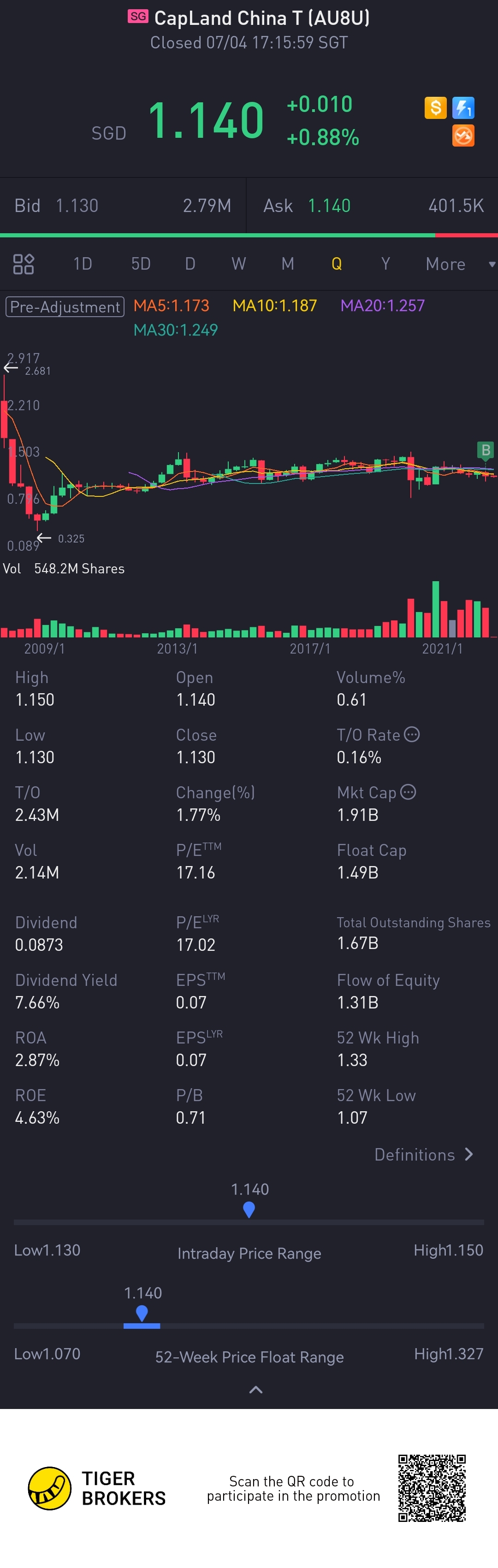 $CapLand China T(AU8U.SI)$ I believe that with the China border opening up, which is sooner or later will help the financials of this counter positively.