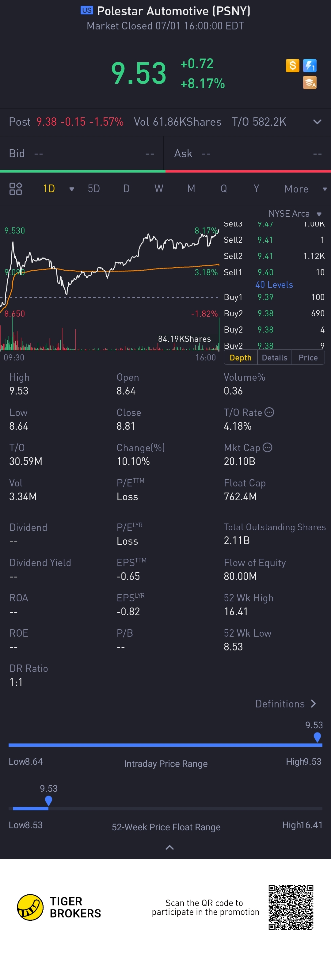 $Polestar Automotive(PSNY)$the only way for the stock price to go below the base price of 10 is either (a) panic selling or (b) shareholders having bought the stock at below 10 (& then selling it off for marginal profit) or both. In the case of (b), it has been reported that GGPI Sponsors & PIPE investors have purchased the shares before-merger at 9.09 apiece. Since the lowest price for PSNY stock reached about 8.60+, there's speculation that there could be shares floated out in the market that was bought at a lower price than 9.09 pre-merger. Let's not forget that about the 25% share redemption that occurred before merger, which could also be floated out there for below 10 apiece as well.