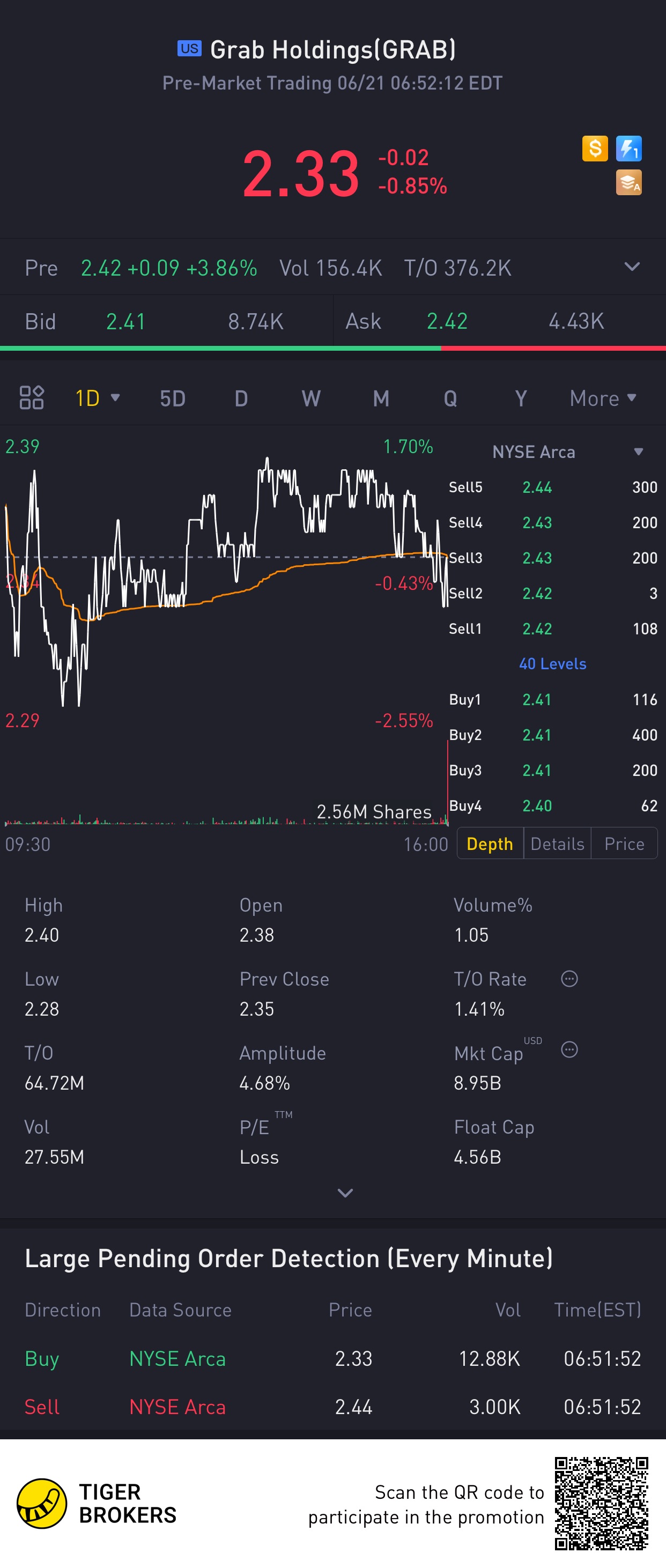 $Grab Holdings(GRAB)$Grab it tonite..Let go at $3.0