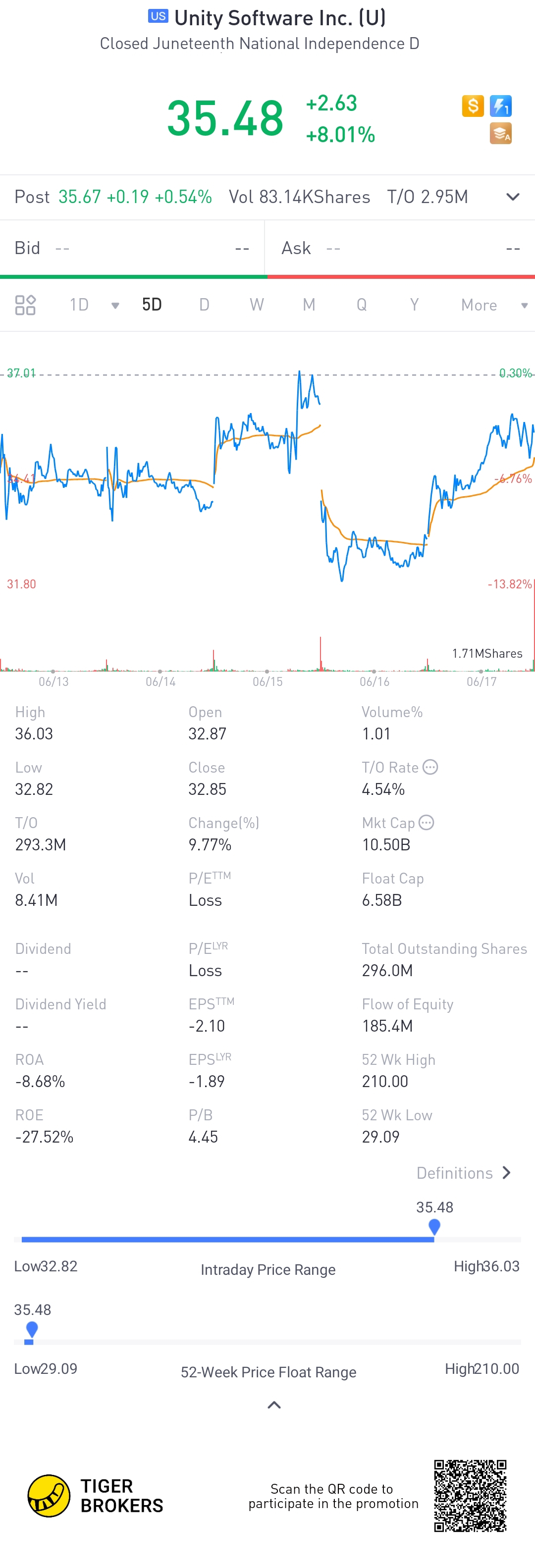 $Unity Software Inc.(U)$thie is one stock that has rise with the tide last year and dropped drastically this year. At a peak of 150 Nd then now ranging at 30, it is relatively cheap, especially they are still making good profits, 30% yoy.