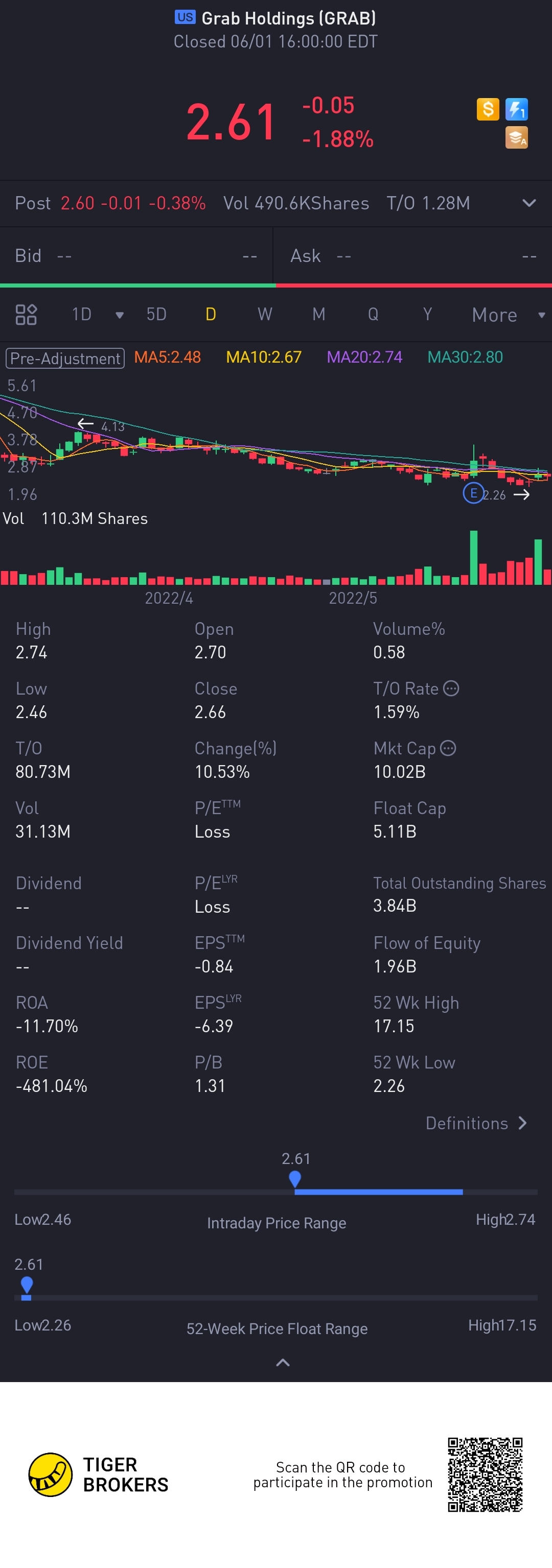 heading lower. In the next 2-3 quarters, investors will see massive share dilution as grab has started giving out share based compensation to employees. My previous target price was $2.50 without dilution, assuming 15% dilution, expect $2.10 to be where it will go